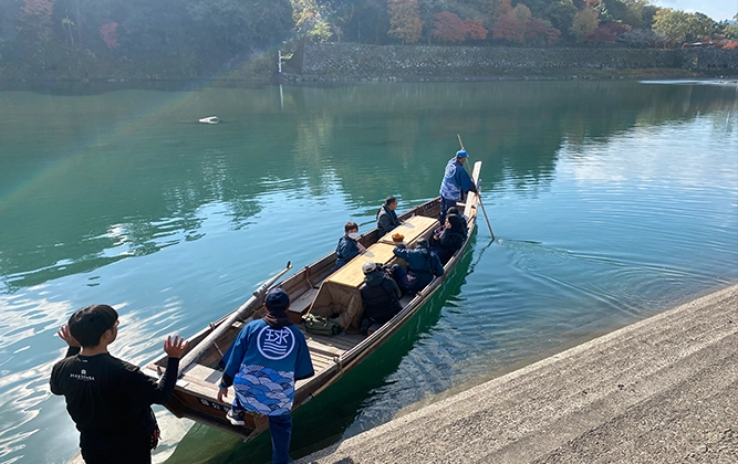 球磨川くだりこたつ船コース終了次第、シャトルバス経由で観光タクシーにて出発